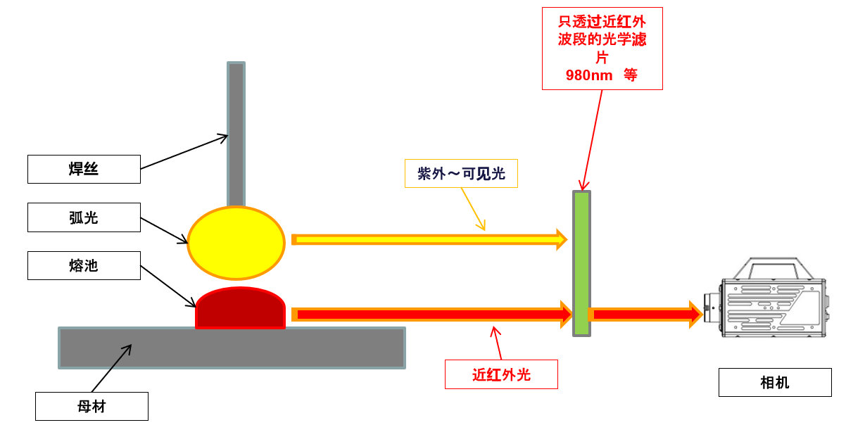 一套完整的焊接高速攝像系統有高速攝像機、激光光源、濾鏡及數據記錄儀和分析軟件組成